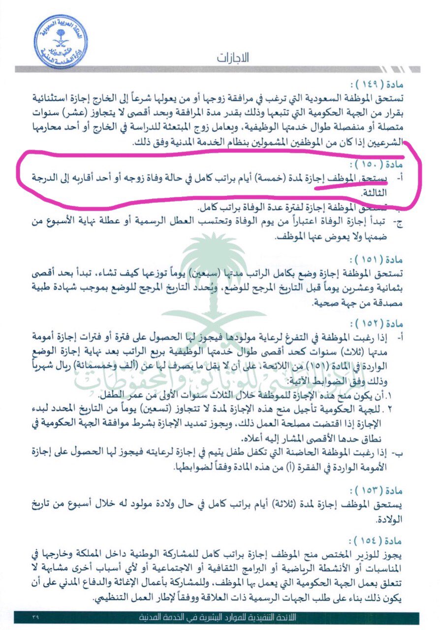 Fa A Aℓviqami On Twitter في اللائحة الجديدة مادة150 تمنح للموظف إجازة 5 أيام في حالة وفاة الزوجة أو أحد الأقارب حتى الدرجة الثالثة وتحتسب بدايتها من تاريخ الوفاة حتى لو صادف ذلك