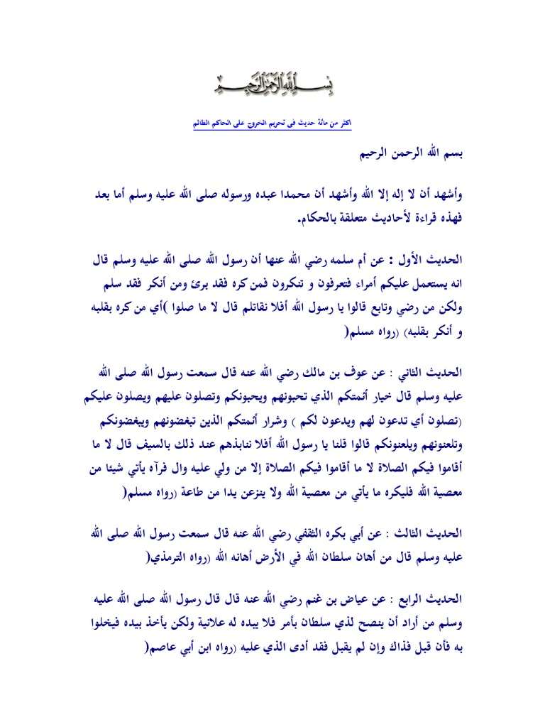 د هلال الكعبي En Twitter أكثر من ١٠٠ حديث في تحريم الخروج على الحاكم Https T Co Cqbfsdewai