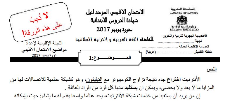5 نماذج من الامتحانات الإقليمية في اللغة العربية و التربية الإسلامية للمستوى السادس ابتدائي مع التصحيح يونيو 2017 موقع الأساتذة والتلاميذ للتعليم عن بعد